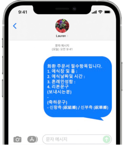 화환 주문하시는 방법을 안내해 드리겠습니다. 꽃은 예식시작 전에 배송을 해야 하기 때문에,