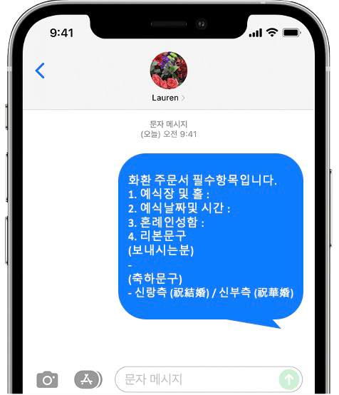 ※결혼식날 이전에 미리 주문하시기를 권해 드립니다!